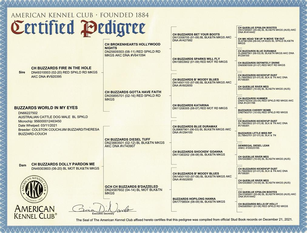 Buzzards WORLD IN MY EYES pochodzi z USA z jednej z najlepszych hodowli na świecie z wielkimi tradycjami.